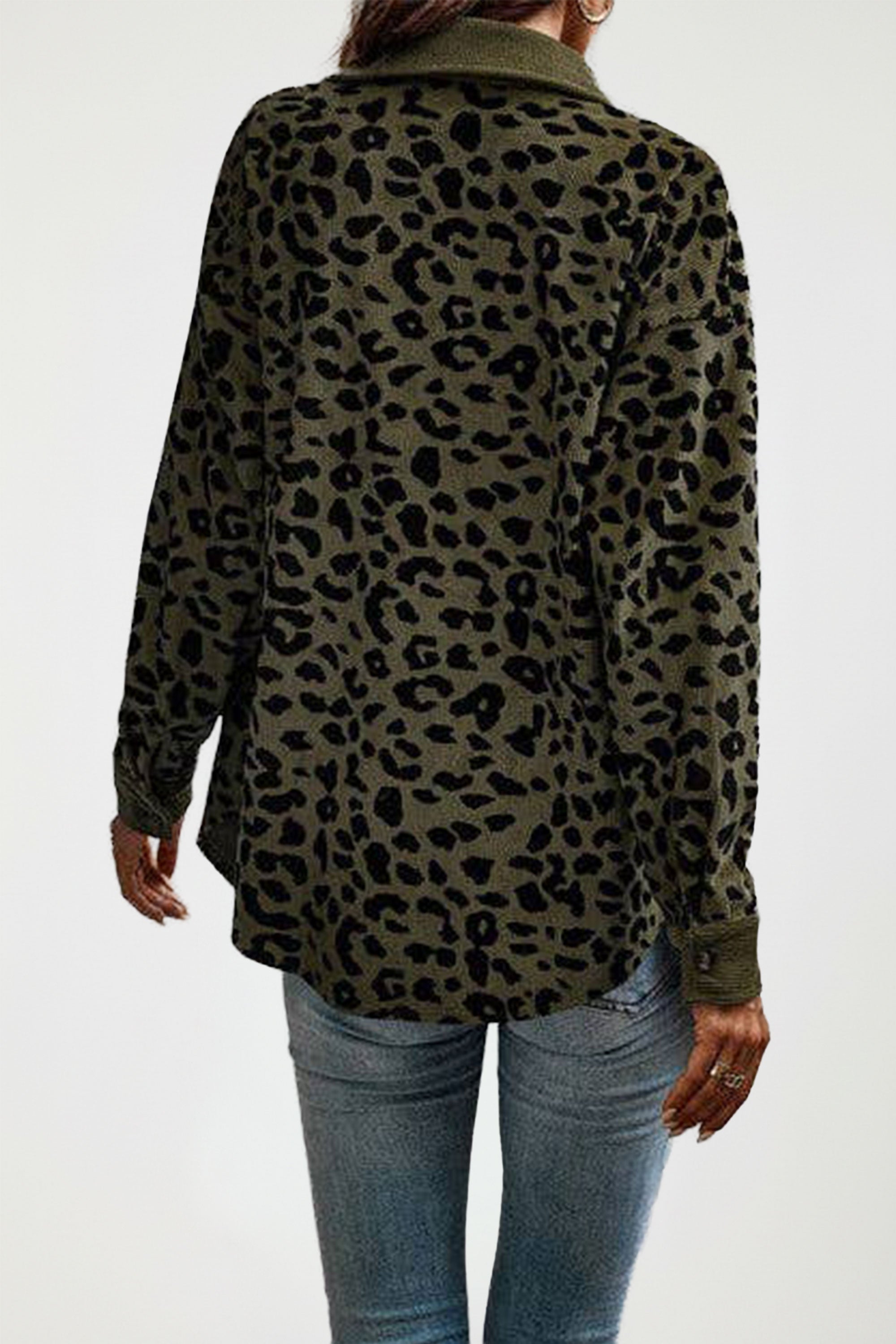 Button Down Long Sleeve Leopard Pocket Shirt Jacket