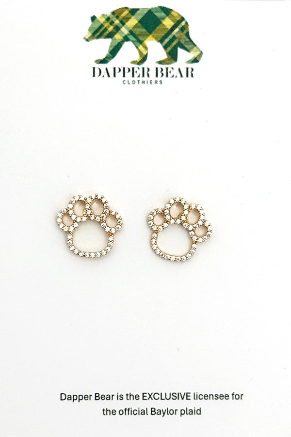 Show your Baylor pride with a touch of sparkle! These Paw Print Stud Earrings add a fun yet polished accent to any outfit. Crafted with shimmering rhinestones and a lightweight feel, they’re perfect for game days, tailgates, or everyday wear when you want to show your Bear spirit in style.