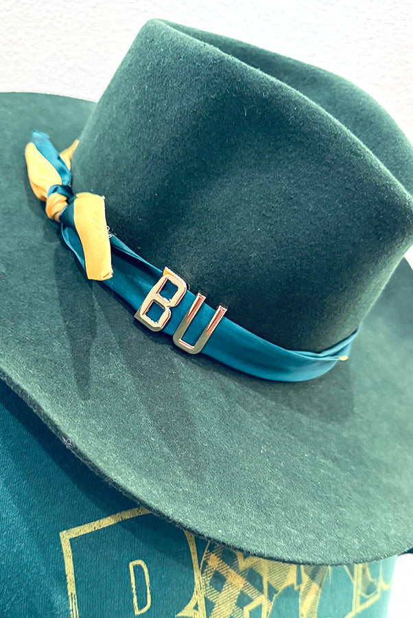Elevate your game day style with the BU Gold Scarf Charms, the perfect accessory to add a polished Baylor touch to any hat, scarf, or bag. These sleek gold letter charms spell out “BU” with clean, modern lines that stand out against your green and gold outfits.