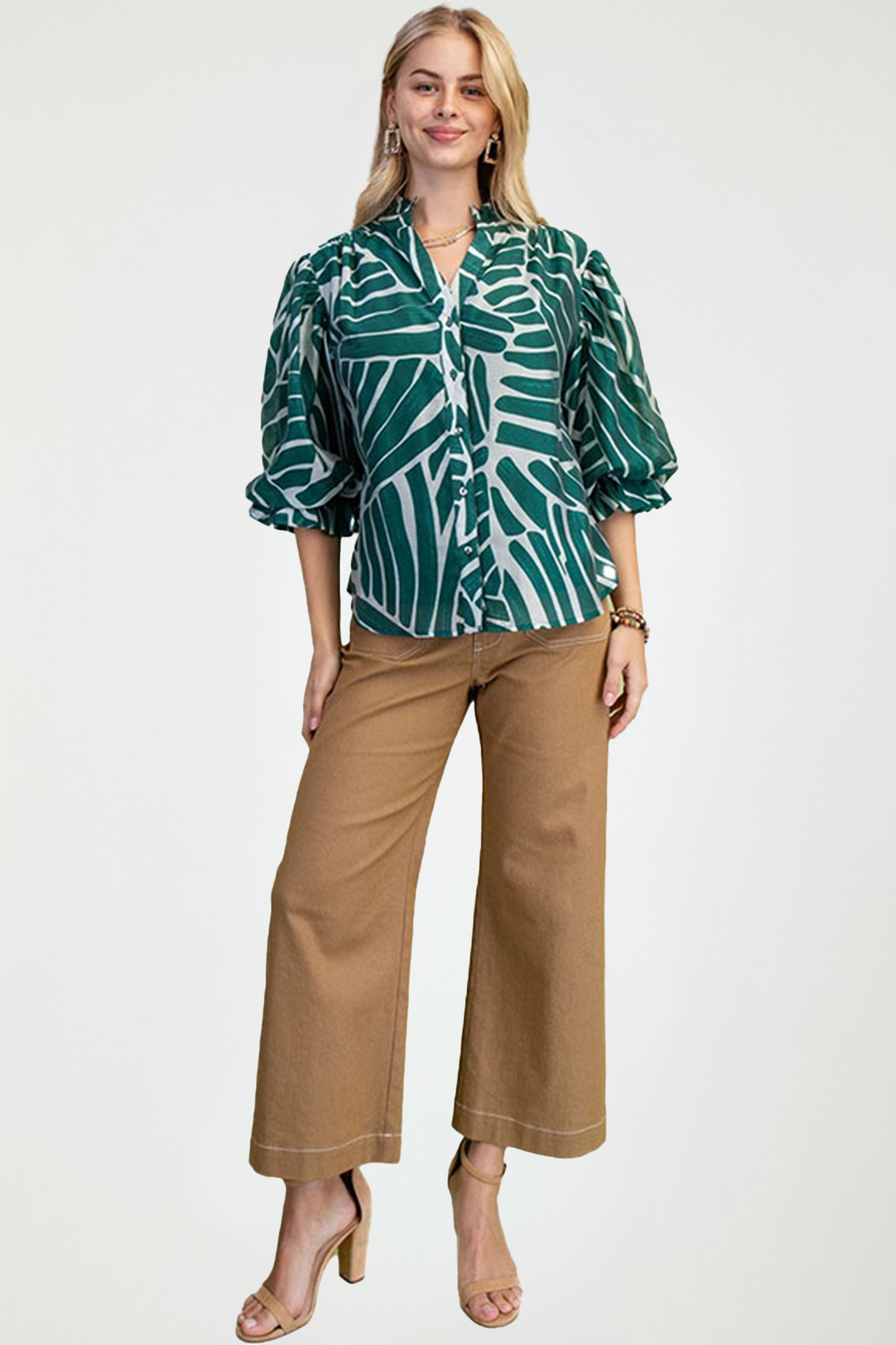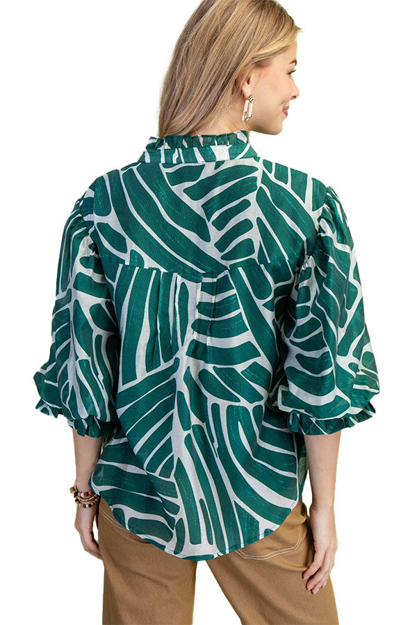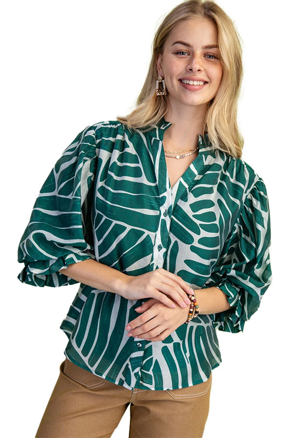 A little artsy, a little polished, and a whole lot of personality — The Studio Scribble Blouse is here to elevate your everyday style. Featuring a dreamy abstract print and soft 3/4 gathered balloon sleeves, this button-down beauty brings flow and flair with zero fuss.